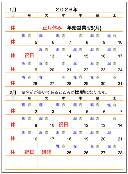 営業時間:平日 10:00~14:00/15:00~19:00 土曜 9:00~13:00